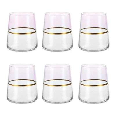 Give your table a touch of timeless elegance with this set of 410ml clear glasses. Thanks to the sophisticated gold central ring, they are perfect for brightening up any occasion, from formal dinners to cozy moments.