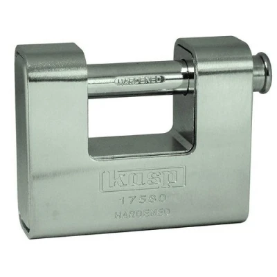 Kasp K17580D - High Security Armoured Shutter Lock Hardened Steel Shackle - Extra protection against hacksaw & cropping attacks Double Ball Bearing Locking Mechanism - Extra strength to resist torsion & pull attacks Solid Brass Body encased in a Steel Jacket - Extra strength & resistance against corrosion 5 pin cylinder with anti-pick mushroom pins - Extra protection against picking Paracentric keyway - Extra protection against manipulation Drill resistant keyway - Protects the cylinder against drill attack Body Width: 80mm Shackle Diameter: 12mm Shackle Internal Clearance: 37mm Wide x 17mm High Kasp Security Rating: 11 (Rating scale 1-15) Comes with a 10 Year Manufacturers Warranty