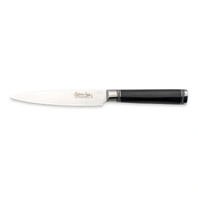 Amazon MarketplaceEXCEPTIONAL DESIGN: Masterfully crafted from Japanese 67-layer, VG-10 Damascus stainless steel with a sleek black Pakkawood handle, presented in a pakkawood box EXTREME TOUGHNESS: Constructed from 67-layers of the highest quality VG-10 Damascus steel, each Katana Saya knife has a high carbon content ensuring robust edge retention UNPARALLELED SHARPNESS: The Damascus steel blades offer exceptional sharpness for long lasting powerful cutting in the kitchen TOUCH OF ELEGANCE: Choose the sleek, black Pakkawood handle, with an ergonomic chestnut shape, for a soft and elegant design right at home THE UTILITY KNIFE: This small 12cm (4.7 in) utility knife is a similar shape to the larger chef's knife, but suited to smaller more delicate tasks and food types in the kitchen