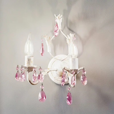 Kate 2 Light Candle Wall Lamp, Ivory Pink Droplets