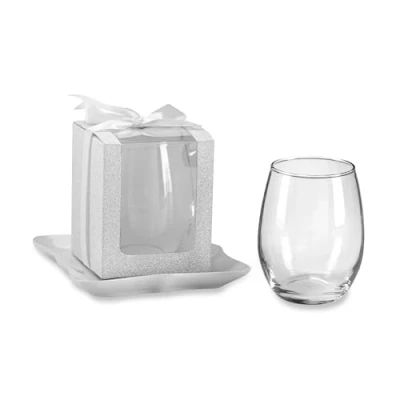 BEAUTIFUL GIFT PRESENTATION - Silver glitter box with PVC window in front and white satin bow to show off your Kate Aspen 9 oz stemless wine glasses CONVENIENT - Sold in sets of 12 boxes MEASUREMENTS - Measures 3.14"w x 3.93"h x 3.14"d. GREAT GIFT - Perfect party favor or gift box for wedding, birthday or bridal shower guests! PERFECT DECORATION - Spruce up your wedding or party decorations with elegant wine glass display boxes.NOTE: GLASS NOT INCLUDED