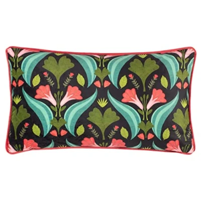 Featuring a hand-drawn kaleidoscope of floral patterns set against a black background, by English designer, Kate Merritt; inspired by her love of the French countryside, florals and nature. Complete with a contrasting piped trim, plain velvet reverse and hidden zip closure. Printed on a luxurious opulent velvet fabric. Machine Washable & Line Dry Only. Printed, designed and made in the UK.