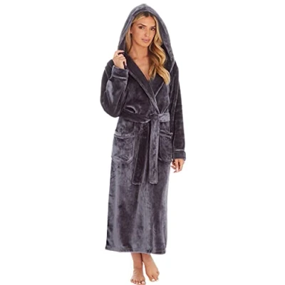 KATE MORGAN Ladies Luxury Longer Length Soft & Cosy Hooded Dressing Gown (20 22, Charcoal)