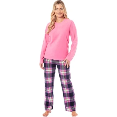 KATE MORGAN Womens Pyjamas Warm Fleece for Women Sets Pjs S XL Soft Twosie Pyjama Set Ladies Gifts Her Pink check M