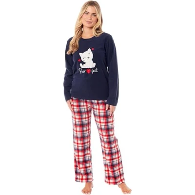 KATE MORGAN Womens Pyjamas Warm Fleece for Women Sets Pjs S XL Soft Twosie Pyjama Set Ladies Gifts Her Snuggle Up Cat Navy M