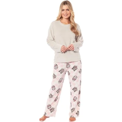KATE MORGAN Womens Pyjamas Warm Fleece for Women Sets Pjs S XL Soft Twosie Pyjama Set Ladies Gifts Her Snuggle Up Grey L