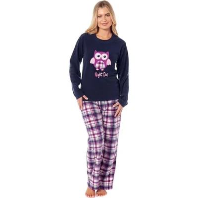 KATE MORGAN Womens Pyjamas Warm Fleece for Women Sets Pjs S XL Soft Twosie Pyjama Set Ladies Gifts Her Snuggle Up Owl Navy