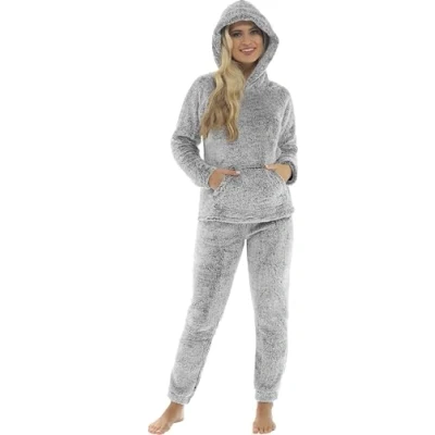 KATE MORGAN Womens Pyjamas Warm Fleece for Women Sets Pjs with Pockets S XL Soft Twosie Pyjama Set Ladies Gifts Her Charcoal Snuggle