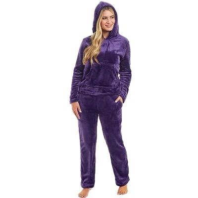 KATE MORGAN Womens Pyjamas Warm Fleece for Women Sets Pjs with Pockets S XL Soft Twosie Pyjama Set Ladies Gifts Her M Purple