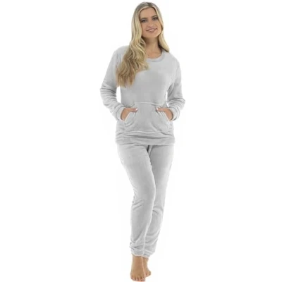 KATE MORGAN Womens Pyjamas Warm Fleece for Women Sets Pjs with Pockets S XL Soft Twosie Pyjama Set Ladies Gifts Her (XL Grey)