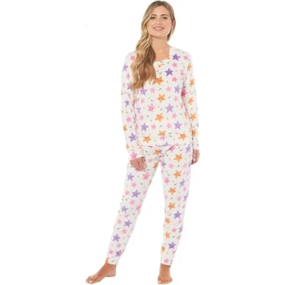 KATE MORGAN Womens Pyjamas Warm Fleece PJ for Women Sets Pjs S XL Soft Twosie Pyjama Set Ladies Gifts Her L Cream Star
