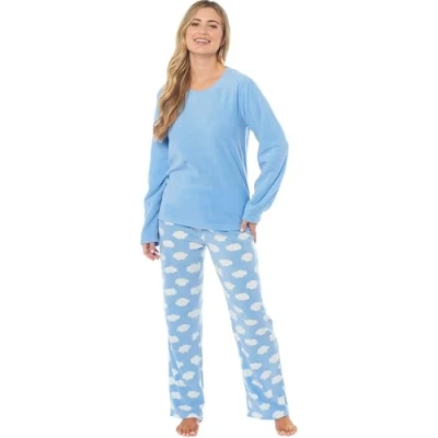 KATE MORGAN Womens Pyjamas Warm Fleece PJ for Women Sets Pjs S XL Soft Twosie Pyjama Set Ladies Gifts Her M Blue Cloud