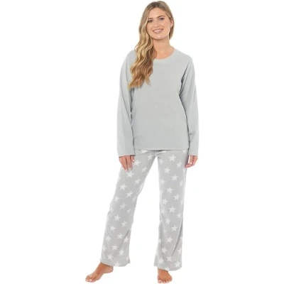 KATE MORGAN Womens Pyjamas Warm Fleece PJ for Women Sets Pjs S XL Soft Twosie Pyjama Set Ladies Gifts Her M Grey Star