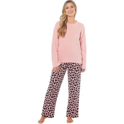 KATE MORGAN Womens Pyjamas Warm Fleece PJ for Women Sets Pjs S XL Soft Twosie Pyjama Set Ladies Gifts Her Pink