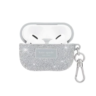 kate spade new york AirPods Pro Protective Case with Keychain Ring Crystal Pave Silver, Compatible 2nd / 1st Generation