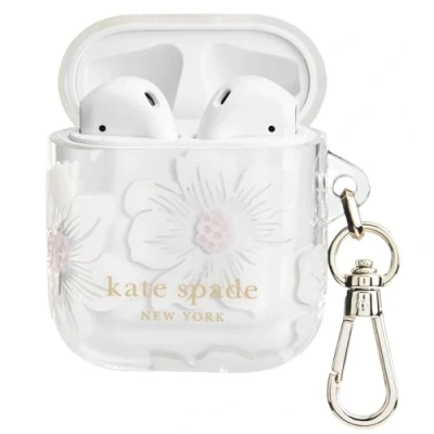 kate spade new york AirPods Protective Case with Keychain Ring Hollyhock Cream, Compatible 2nd/ 1st Generation