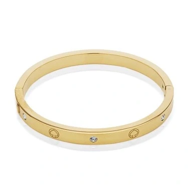 Get ready to glow in this sleek designer bangle from Kate Spade. Crafted in a golden tone, this hinged bangle has been adorned with mini Spade motifs, with dazzling clear crystals placed in between each one. Great for adding a luxurious finish to any look. Try stacking for a statement finish.Gold toneSpade & crystal detailsHinged bangleDimension: 6cm
