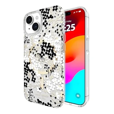 DURABLE FASHION - Designed exclusively for the iPhone 15/iPhone 14/iPhone 13, our cases incorporate over 40% recycled copolyester and TPU Style meets practicality: elevate your iPhone 15/iPhone 14/iPhone 13 with a fresh vibe with this Kate Spade New York case; It goes beyond appearance, providing convenience and ensuring easy access to all buttons and ports; Enjoy a smooth user experience with a touch of style and functionality SAFE AND SECURE This Kate Spade New York case is equipped with shock absorbing bumpers to provide 10ft drop protection, while the anti-scratch coating acts as a shield to protect your phone from accidental bumps and scratches Compatible with MagSafe Our iPhone 15/iPhone 14/iPhone 13 case is equipped with powerful built-in magnets, ensuring a secure connection for transparent MagSafe charging and easy compatibility with accessories to enhance your overall user experience Package Included 1 x Kate Spade New York Multi Floral Black and White Case for iPhone 15/iPhone 14/iPhone 13 ONLY - Limited Lifetime Warranty