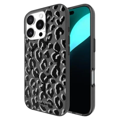 Kate Spade New York iPhone 16 Pro Case Compatible with MagSafe Designer Phone City Leopard Black
