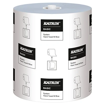 Flat sheets are fed out in the right size. Ultimate hygienic solution Large amount of paper on the roll. Zero wastage with all the paper on the rolled used up Certified under the Nordic Eco Label, Food safe - Particularly suitable within food handling, where the blue colour ensures traceability For use with Katrin System Hand Towel Dispenser, suitable for all washrooms but especially where there is medium to high traffic 200m long with a cutting length of 23cm gives 850 sheets per roll, 6 rolls per case