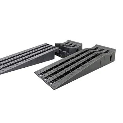 Set of 2 durable and strong plastic detachable vehicle ramps G.V.W (gross vehicle weight): 13000 LBS Made of high quality resistant synthetic material for long lasting performance Safe, fast and easy to operate, Ideal for almost each purpose Suitable for small services and maintenance under-vehicle checks Overall dimensions: 130L x 38W x 21H (cm)