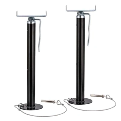 Constructed of zinc plating steel and black electrophoresis surface, durable and anti-rust. Adjustable height from 19" to 47" with incremental locked positions, supports up to 5,000 lbs. Great for providing support and stablize to RV slide outs when extended to keep your RV in top shape. Package includes 2 x slide out stabilizers to add to your camper accessories. Suggest to use concrete blocks or wooden leveling blocks for campers to stabilize the RV slide out jacks on an even surface.