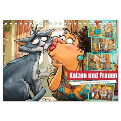 Katzen und Frauen. Lustige Cartoons vom täglichen Chaos (Tischkalender 2026 DIN A5 quer), CALVENDO Monatskalender: Witzige Szenen aus dem Alltag mit Katze frech, flauschig voller Überraschungen