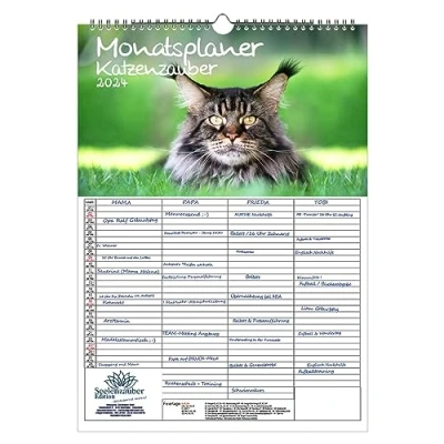 Katzenzauber Wall Planner Family 4 Column A3 Calendar for 2024 Cats and Seelenzauber