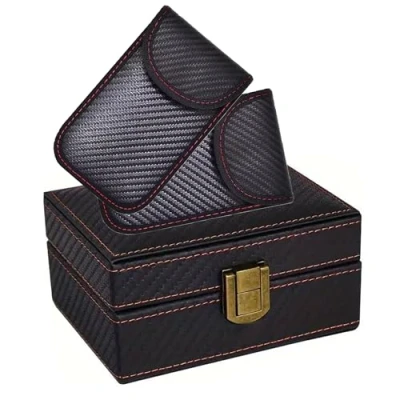 Complete Signal Blocking Protection: Effectively blocks RFID, NFC, WiFi, Bluetooth, 5G, and GPS signals to safeguard car keys, credit cards, mobile phones, and other electronic devices from theft and hacking. Portable Faraday Pouch: Lightweight, compact (12.5 x 8 cm) and easy to carry in pockets, purses, or bags, offering reliable on-the-go protection for car key fobs, ID cards, and contactless credit cards. Spacious Faraday Box: Large capacity design securely holds 8–10 car keys, key rings, remotes, or other valuables; ideal for home, garage, or office use with strong anti-theft signal shielding technology. Premium Build & Modern Style: Made with high-quality PU leather, solid wood, and durable carbon fiber exterior, combining strength, elegance, and long-lasting performance with a sleek, modern design. Tested & Reliable Anti-Theft Solution: Equipped with advanced RF shielding lining, thoroughly tested for effectiveness against key fob cloning, signal relay attacks, and digital hacking attempts.