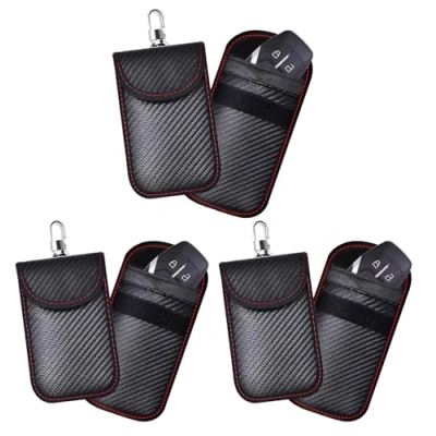 𝐏𝐑𝐄𝐌𝐈𝐔𝐌 𝐌𝐀𝐓𝐄𝐑𝐈𝐀𝐋 𝐀𝐍𝐃 𝐃𝐄𝐒𝐈𝐆𝐍: Our Faraday Key Fob Protector features a sleek carbon fiber construction and snap hook on the back design. This car accessories provides both style and durability for your pocket-sized car key wallets. 𝐂𝐎𝐌𝐏𝐀𝐂𝐓 𝐒𝐈𝐙𝐄: Our signal blocking faraday box for car keys is compact and portable. Its 12.5CM x 8 CM (4.92x3.14)Inch mesurement makes it easy to carry in your pocket or purse without adding extra bulk or weight. 𝐑𝐅𝐈𝐃 𝐁𝐋𝐎𝐂𝐊𝐈𝐍𝐆 𝐓𝐄𝐂𝐇𝐍𝐎𝐋𝐎𝐆𝐘: Utilizing advanced RFID blocking technology, it blocks Like calls, SMS, WiFi, 5G, tooth, RFID, NFC. our faraday pouch ensures that your key signals are effectively shielded from unauthorized access, hacking or cloning. This anti theft bag protects your vehicles signals and personal information. 𝐄𝐍𝐇𝐀𝐍𝐂𝐄𝐃 𝐒𝐄𝐂𝐔𝐑𝐈𝐓𝐘: This Farady car key signal blocker pouch is designed with anti-theft properties. Our key signal blocker offers enhanced security against electronic theft and cloning attempts, giving you peace of mind wherever you go. 𝐒𝐄𝐂𝐔𝐑𝐄 𝐊𝐄𝐘𝐋𝐄𝐒𝐒 𝐄𝐍𝐓𝐑𝐘 𝐀𝐒𝐒𝐔𝐑𝐀𝐍𝐂𝐄: This pouch bag ensures your car key signals are secured and no one can use it unless it's you. Put the key in the key fob into the faraday bag and your car is secured from unwanted incidents., Manufacturer: KAV