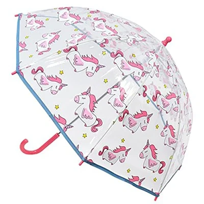 KAV Flying Unicorn Kids Transparent School Umbrella Boys and Girls Sweet, Beautiful, Lightweight Design Dome Parasol for Your Child (Flying Unicorn)