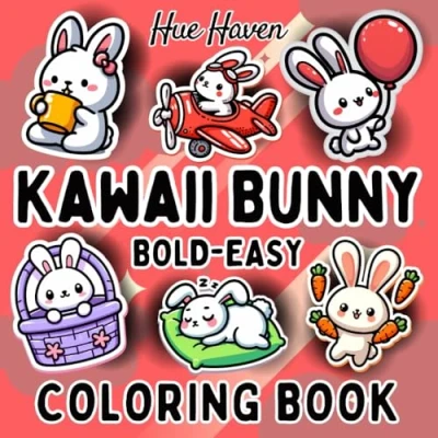 Kawaii Bunny: Easy and Bold Coloring Book for Kids Adults Simple Stress Relief Designs of Cute Rabbits.
