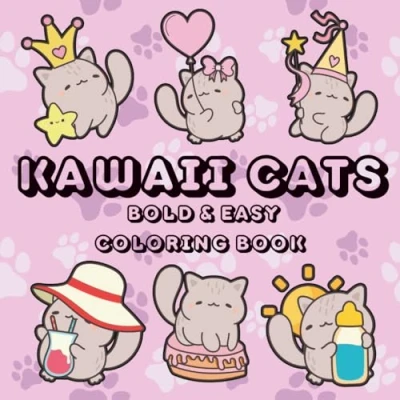Kawaii Cats: Bold & Easy Coloring Book