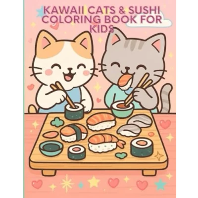 Kawaii Cats & Sushi Coloring Book for Kids: Fun and Easy Pages with Cute Loving