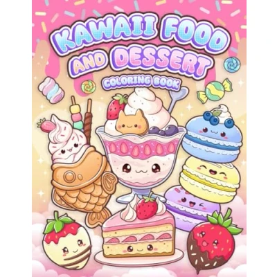 Kawaii Food and Dessert Coloring Book: Cute Sweet Treats, Cupcake, Candy Easy for Kids Adult