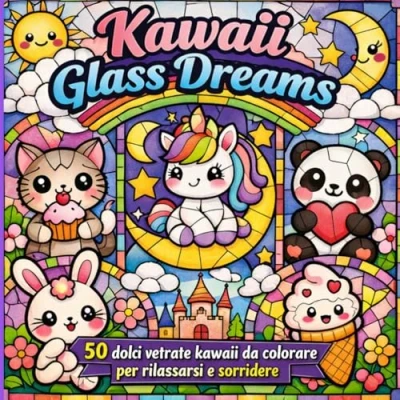 kawaii Glass Dreams: 50 dolci vetrate da colorare per rilassarsi e sorridere