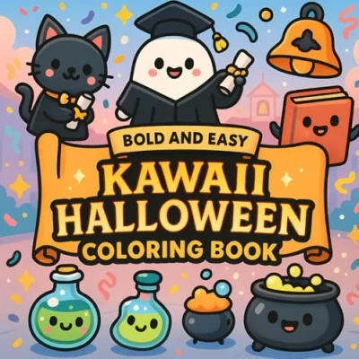 Kawaii Halloween: Adorable Spooky Critters, Bold and Easy Designs, Whimsical Imaginative Fun, Simple Illustrations Coloring Book For Kids