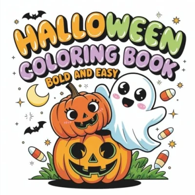 Kawaii Halloween Coloring Book for kids: Cute & Kids Ages 48 Bold Lines, Friendly Monsters, Pumpkins, Ghosts Witches