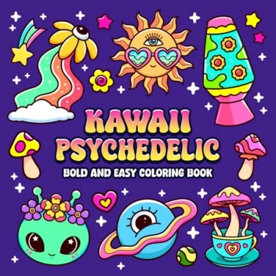 Kawaii Psychedelic Bold and Easy Coloring Book: Simple Cute Trippy Stoner for Adult Relaxation