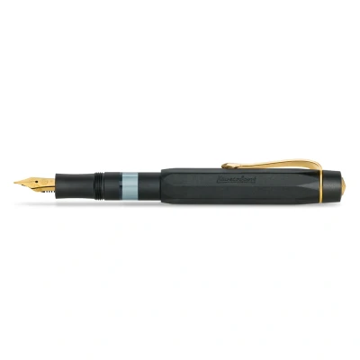 BrepenKaweco Piston Sport AL Solo Black/Gold is a high-quality aluminium fountain pen with an elegant black design and gold accents. Thanks to its robust, lightweight body, the pen sits comfortably in the hand and offers a smooth writing experience. The piston filling ensures a large ink capacity and consistent ink flow. Ideal for everyday use, professional writing or creative note-taking. Compact, stylish and durable, this Kaweco Piston Sport combines functionality with luxurious appeal, perfect for lovers of precision and sophisticated design.