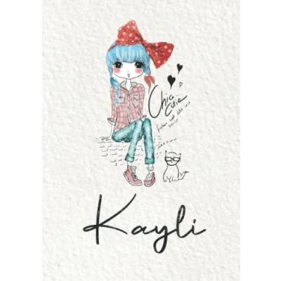 Kayli: Notebook A5 Personalized name Kayli Birthday gift for women, girl, mom, sister, daughter Cover: Fashion girl with cat 120 lined pages journal, small size (ca. 6 x 9 inches)