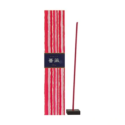 Elegant and fascinating fragrance of Roses Kayuragi, where fragrance (Ka) meets with slowly wafting scented smoke (Yuragi). Comfortable fragrance, with calmly wafting scented smoke. This incense creates a moment filled with contentment. Inspired by Kimono fabric, the package (sleeve) texture is smooth, and its colouring is dramatic. Inside the sleeve this incense and holder rest in a Paulownia wood box; reflecting this product's superior quality. 40 sticks, with stick holder Burn time approx. 25 minutes each