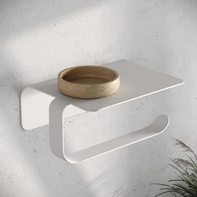 𝗨𝗻𝗶𝗾𝘂𝗲 𝗞𝗔𝗭𝗔𝗜. 𝗗𝗲𝘀𝗶𝗴𝗻: Experience minimalistic Berlin design with 'Leif', a sleek and modern addition to the KAZAI. collection. This wall-mounted toilet roll holder enhances your bathroom decor with its unique style 𝗗𝗿𝗶𝗹𝗹-𝗙𝗿𝗲𝗲 𝗜𝗻𝘀𝘁𝗮𝗹𝗹𝗮𝘁𝗶𝗼𝗻 (𝟯𝗠 𝗧𝗲𝗰𝗵𝗻𝗼𝗹𝗼𝗴𝘆) - 𝗦𝗲𝗹𝗳 𝗔𝗱𝗵𝗲𝘀𝗶𝘃𝗲: Equipped with premium-grade 3M adhesive tape, this metal toilet paper holder offers exceptional bonding strength for an easy, drill-free setup. Ideal for those seeking a hassle-free installation 𝗛𝗮𝘀𝘀𝗹𝗲-𝗙𝗿𝗲𝗲 𝗦𝗲𝘁-𝗨𝗽 & 𝗥𝗲𝗺𝗼𝘃𝗮𝗹: Clean and dry the surface, peel off the protective layer, and stick on your toilet roll holder. Wait 24 hours for full adhesive strength. Easy to remove without residue 𝗖𝗼𝗻𝘃𝗲𝗻𝗶𝗲𝗻𝘁 𝗦𝗵𝗲𝗹𝗳 𝗙𝗲𝗮𝘁𝘂𝗿𝗲: 'Leif' comes with a shelf that is perfect for safely placing small items like mobile phones, wet wipes, or decorative pieces, combining practicality and style in your bathroom 𝗦𝘁𝗮𝗶𝗻𝗹𝗲𝘀𝘀 𝗦𝘁𝗲𝗲𝗹 - 𝗗𝘂𝗿𝗮𝗯𝗹𝗲 𝗮𝗻𝗱 𝗥𝘂𝘀𝘁𝗽𝗿𝗼𝗼𝗳: Crafted from matte, powder-coated, fingerprint-resistant stainless steel, this durable bathroom accessory is a rustproof and long-lasting solution for your bathroom needs
