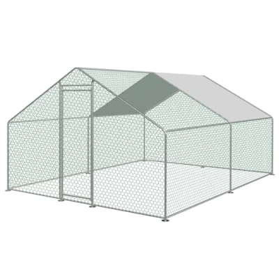 Large Pet Run - KCT Large 4 x 3m Apex Walk In Chicken Coop/Pet Run/Catio/Kennel - a spacious galvanised run that gives your pet room to run and explore in safety. A front door allows you to easily walk in to the house to get to the pets All Year Round Protection - A sun shade helps shelter animals from direct sun and rain. The mesh netting ensures fresh airflow around the pets with the roof providing shelter from extreme heat, sun or rain. Predator Proof - Steel frame + chicken netting keeps your pet safe and secure from potential predators. The door locks safely in place to prevent your pets from escaping Versatile for All - Suitable for animals such as chickens, hens, rabbits, dogs, cats and other poultry. Use alongside wooden rabbit hutches or chicken coops for added comfort and protection Dimensions (LxWxH) - 400 x 300 x 195cm. Includes all parts needed including instructions