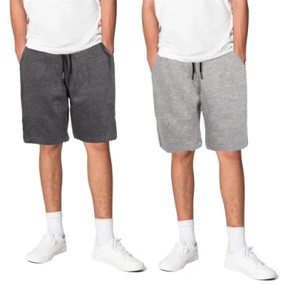 Keanu 2 Pack Mens Regular Fit Fleece Shorts with Zip Pockets, Elastic Waistband, and Drawstring Size M Charcoal/Light Grey