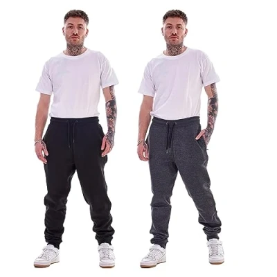 Keanu 2 Pack Regular Fit Mens Joggers Super Soft Jogging Bottoms with Brushed Fleece Lining Lounge Pants Gym Cotton Rich Blend Sizes S 2XL (Black/Charcoal Pack, 2XL)