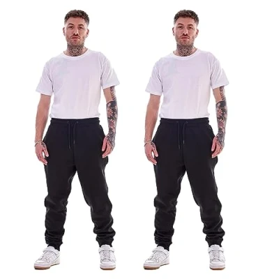 Keanu 2 Pack Regular Fit Mens Joggers Super Soft Jogging Bottoms with Brushed Fleece Lining Lounge Pants Gym Cotton Rich Blend Sizes S 2XL (Black Pack, Medium)