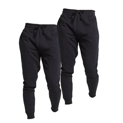 Keanu 2 Pack Slim Fit Mens Joggers Super Soft Jogging Bottoms with Brushed Fleece Lining Lounge Pants Gym Cotton Rich Blend Sizes S 2XL (Black Pack, Large)