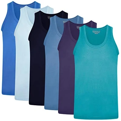 PURE COTTON: 100% Pure Cotton Jersey Vests by Keanu. perfect for keeping cool in summer and extra insulation in the winter EVERYDAY WEAR: These Vests can be worn for Training, Gym and General everyday wear COLOUR PACKS: Packs of 6, available in 4 Colourways, BGW (Black, Grey & White), All White, Blue Mix & Assorted Colours (6 Different Colours as per image) SHOP THE KEANU COLLECTION: Complete your wardrobe with our other Keanu products - Coordinating clothing, nightwear and accessories available. UK SIZES: Available in Mens Sizes S, M, L, XL & 2XL