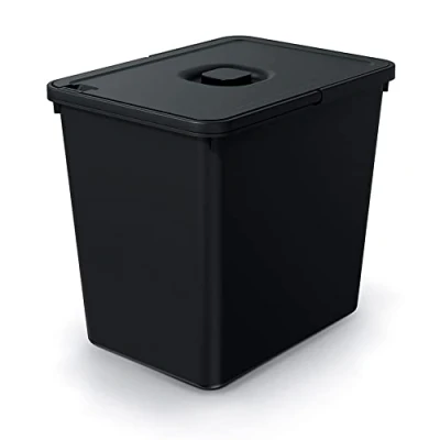 AmazonKEDEN recycling system bucket. You can position it in any configuration, depending on the recycling system. Features a durable ABS handle. With wall hangers in case you are more interested in hanging it. Made in Plastic-Black Color